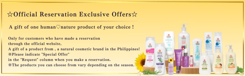 The traditional healing therapy, Hilot Massage, uses 100% pure virgin coconut oil from “Human♡Nature“. This luxurious treatment enhances blood circulation, eases muscle tension, and relieves your stress, leading you into a state of deep relaxation. It gently restores harmony between the mind and body.