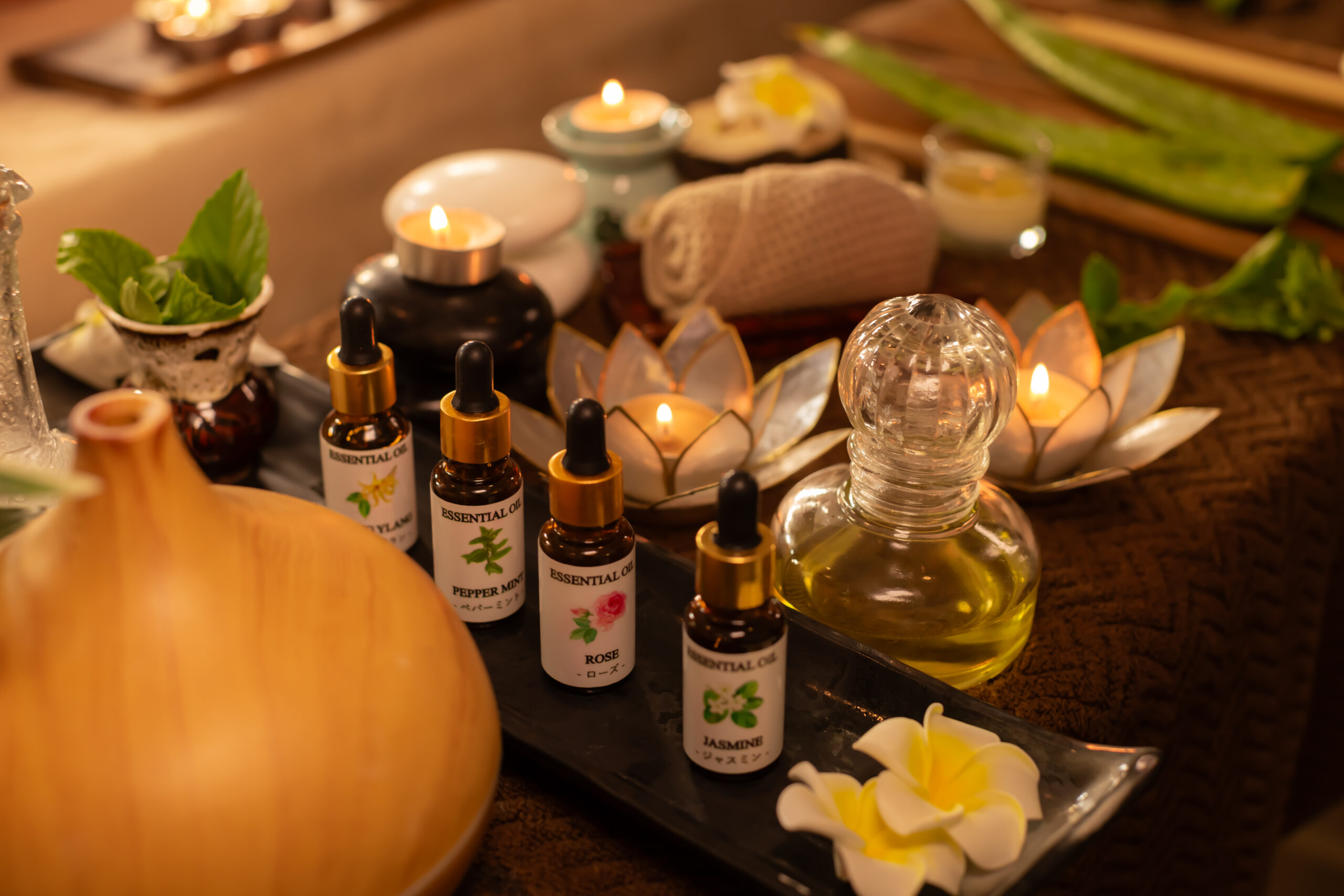 マッサージには、6種類のアロマオイルの中からお好みの香りをお選びいただけるため、心地よい香りに包まれながら、より深いリラクゼーションを体感いただけます。