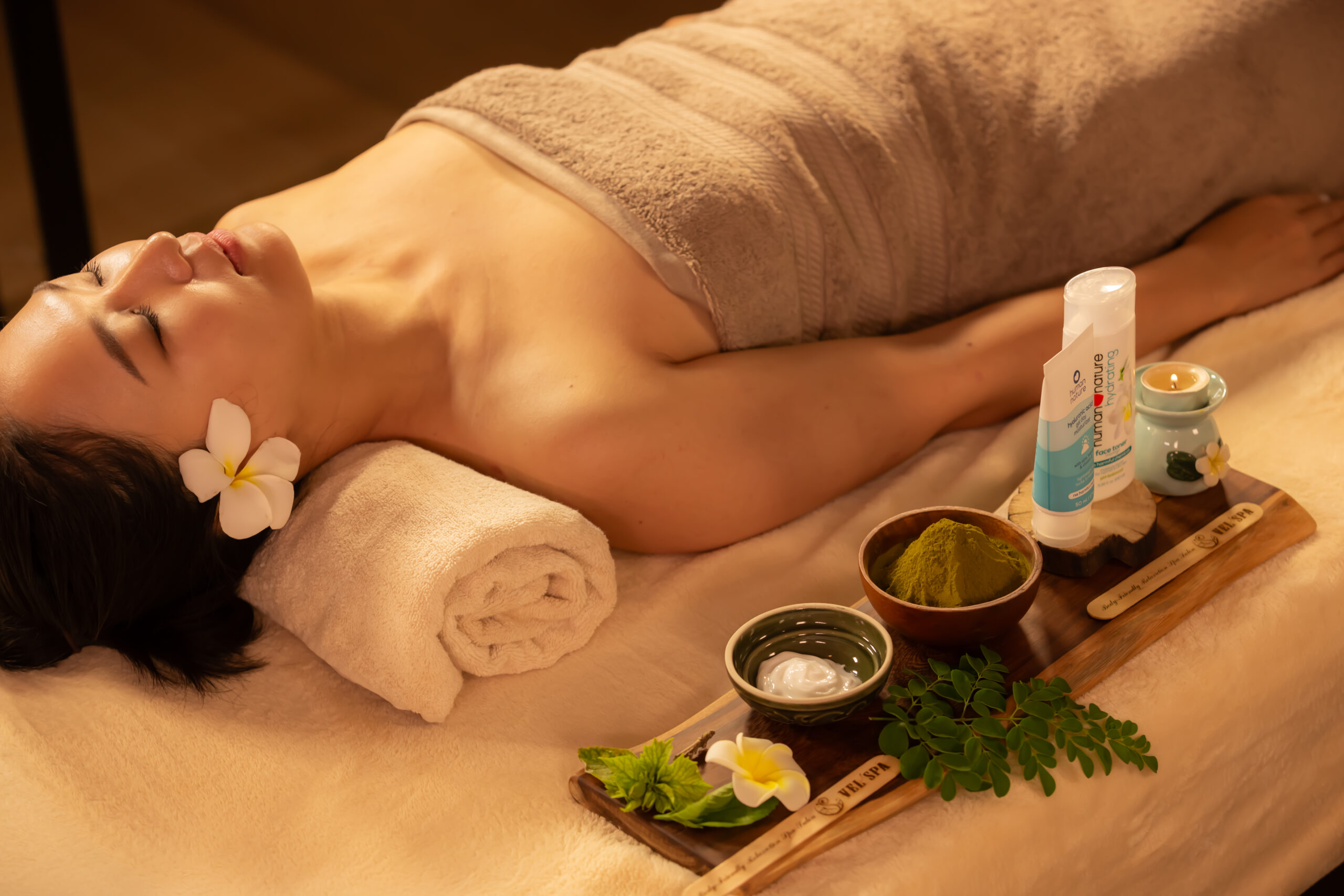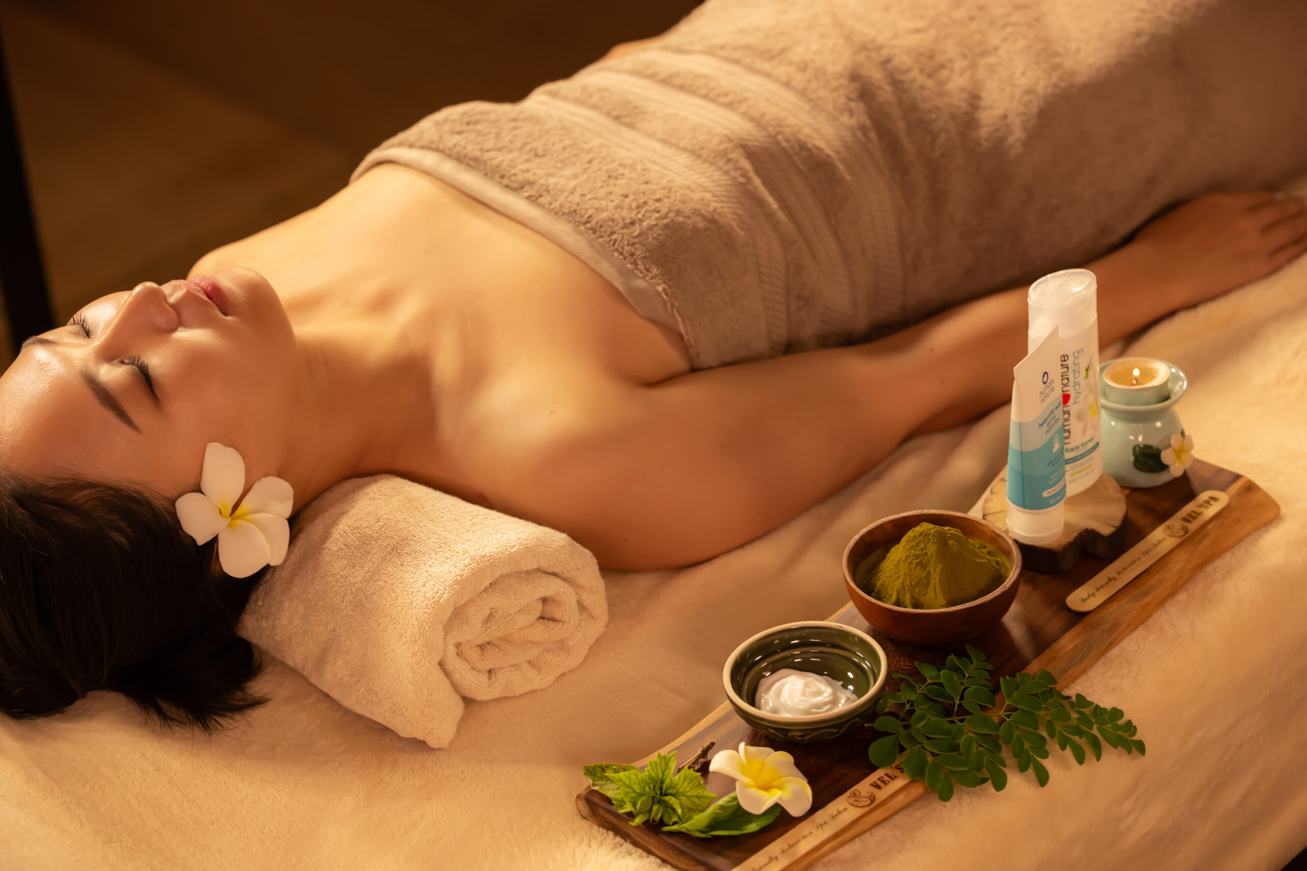 自然素材の力と熟練セラピストの手技が五感すべてに寄り添い、VELSPAならではの深い癒しと満足をお届けします。